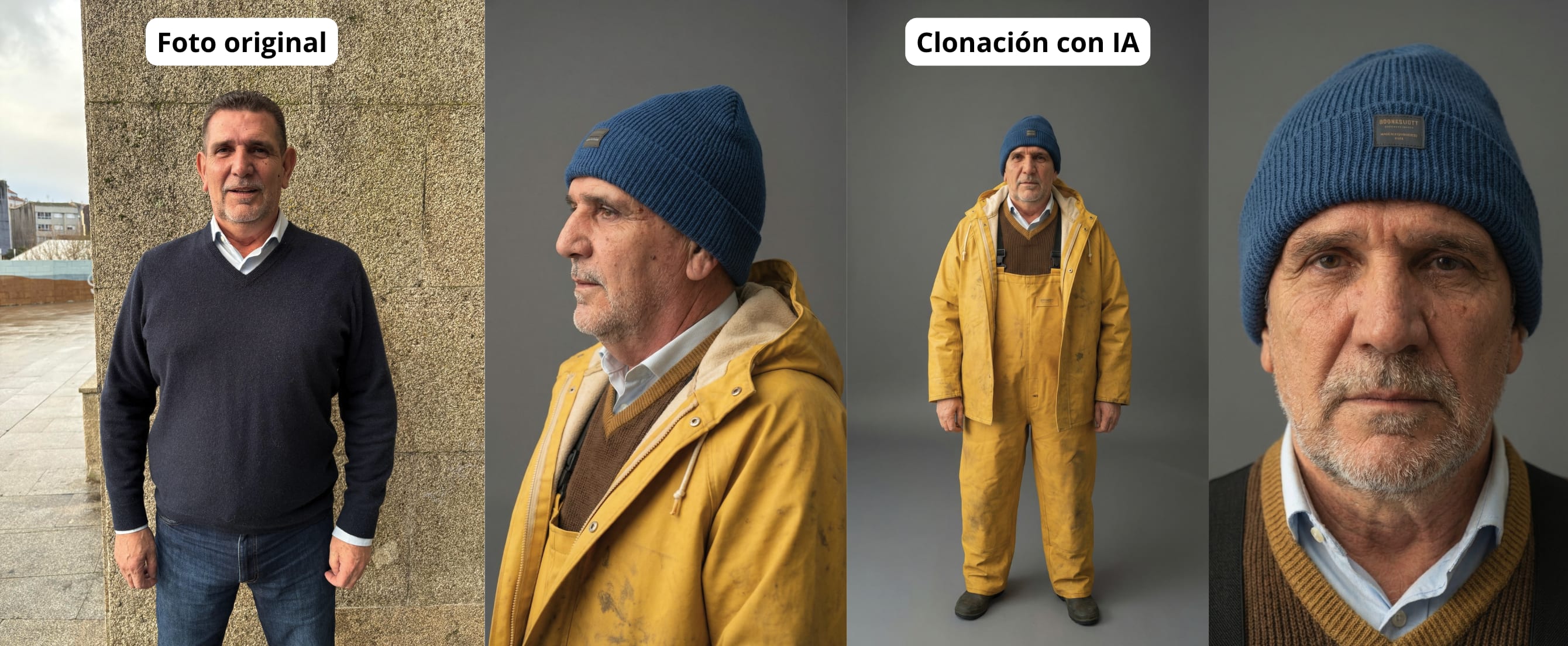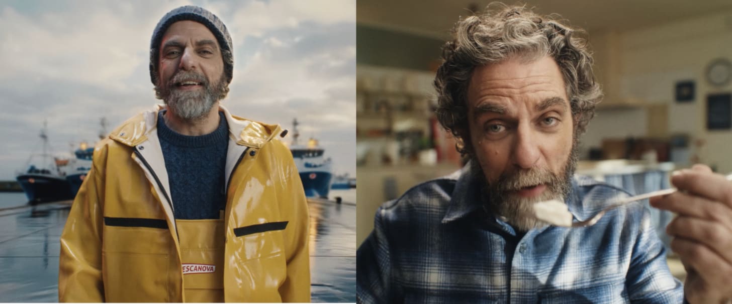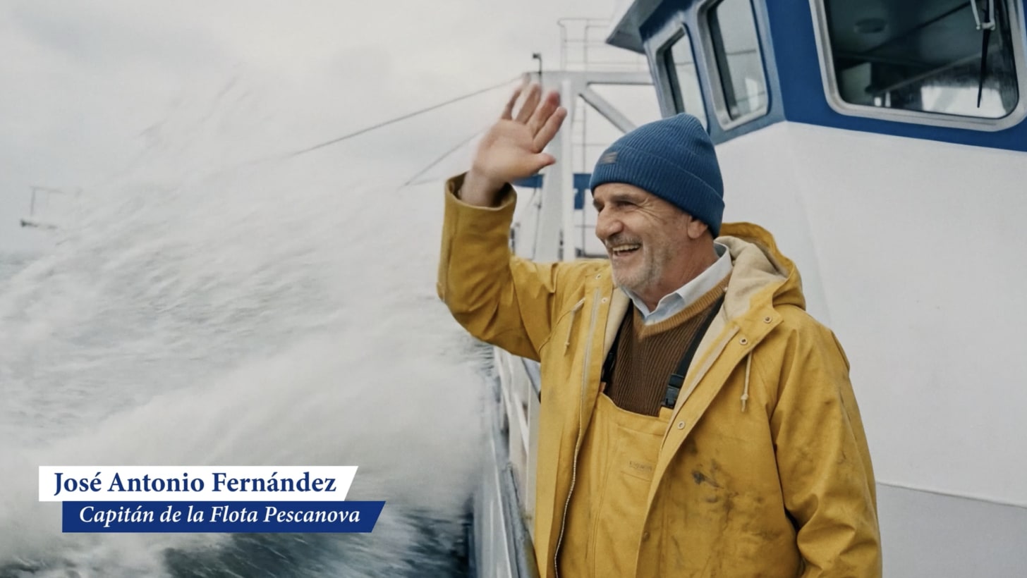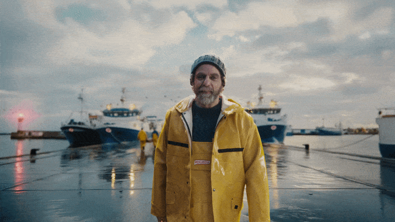 • El cameo imposible en alta mar: Esta es, sin duda, la historia del proyecto. Al cliente le hacía muchísima ilusión que en el spot apareciera uno de sus capitanes reales. Pero él estaba trabajando, a miles de kilómetros, faenando en alta mar. Hacerle perder días de trabajo y volar a Madrid para un solo plano era inviable. ¿Qué hicimos? Le pedimos una foto desde su móvil. Con dos fotografías, logramos clonarle y generarle mediante IA, actuando en un barco en medio de una ola que le salpica, devolviendo el saludo a la cámara.
